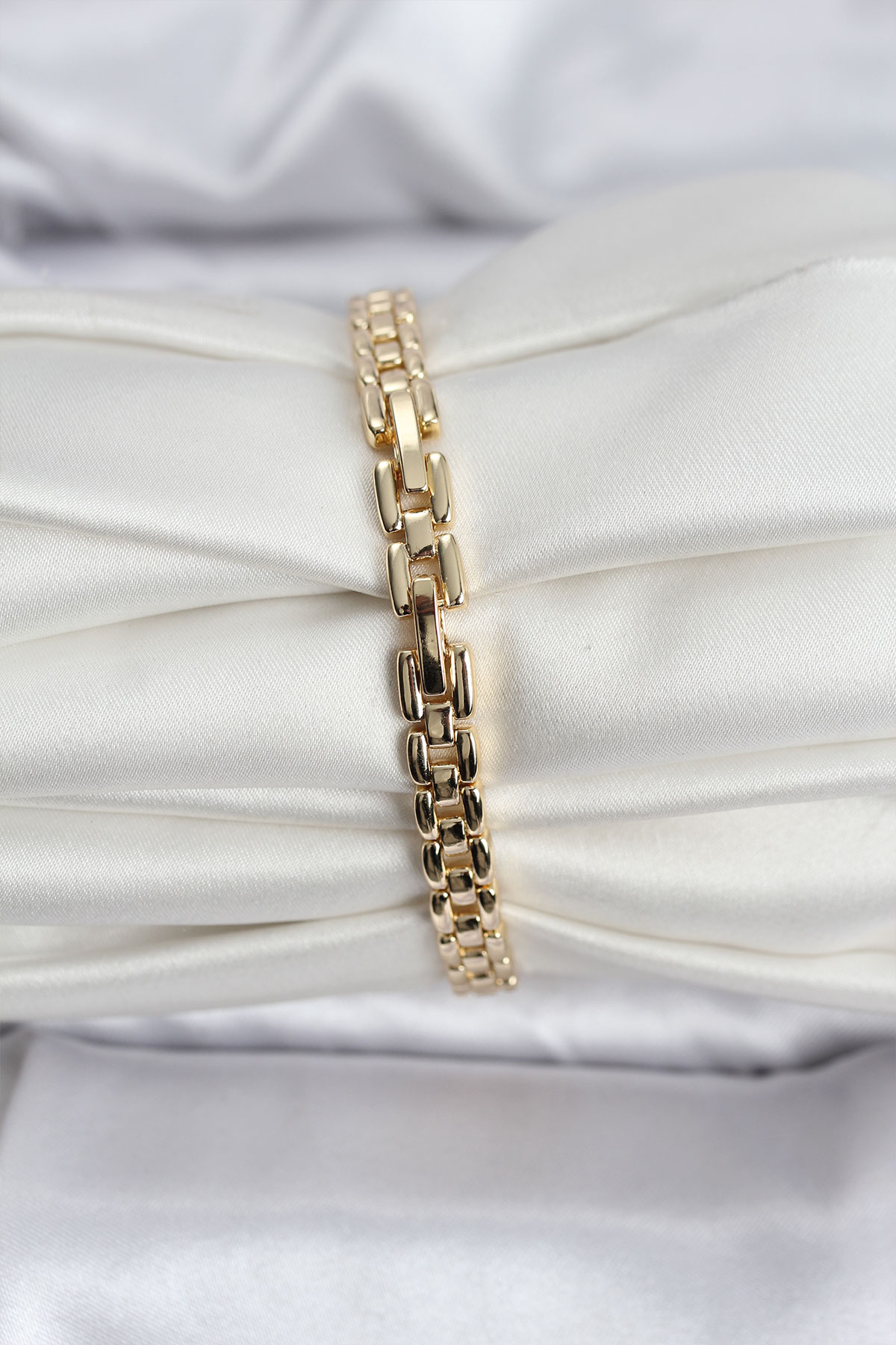 14K Gold Renk Kaplama Zirkon Kare Taşlı CM Kadın Bileklik - 266488