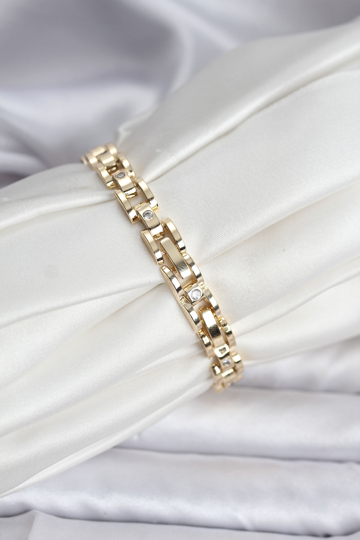 14K Gold Renk Kaplama Zirkon Taşlı CM Kadın Bileklik - 266487