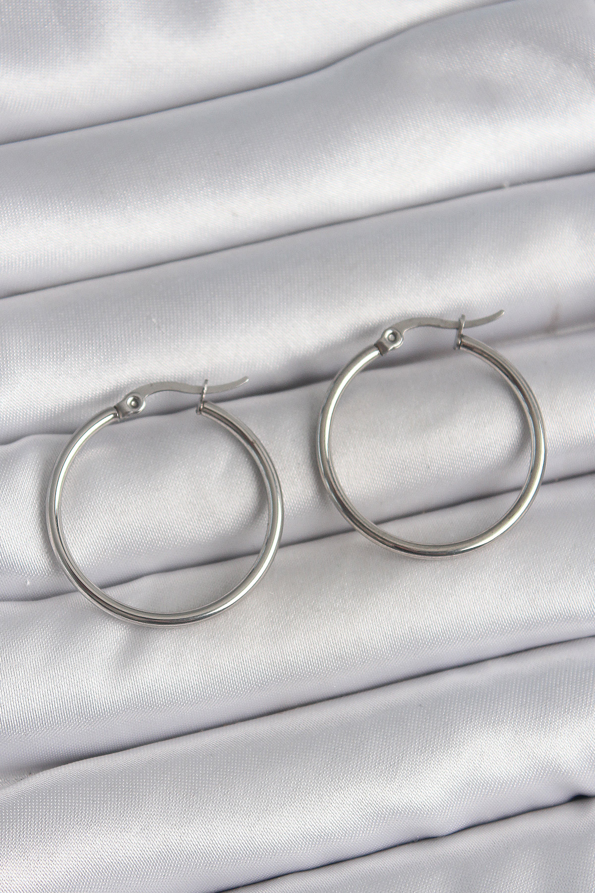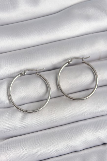 316 Çelik Gümüş Renk 27 mm Halka Model Kadın Küpe - 262467