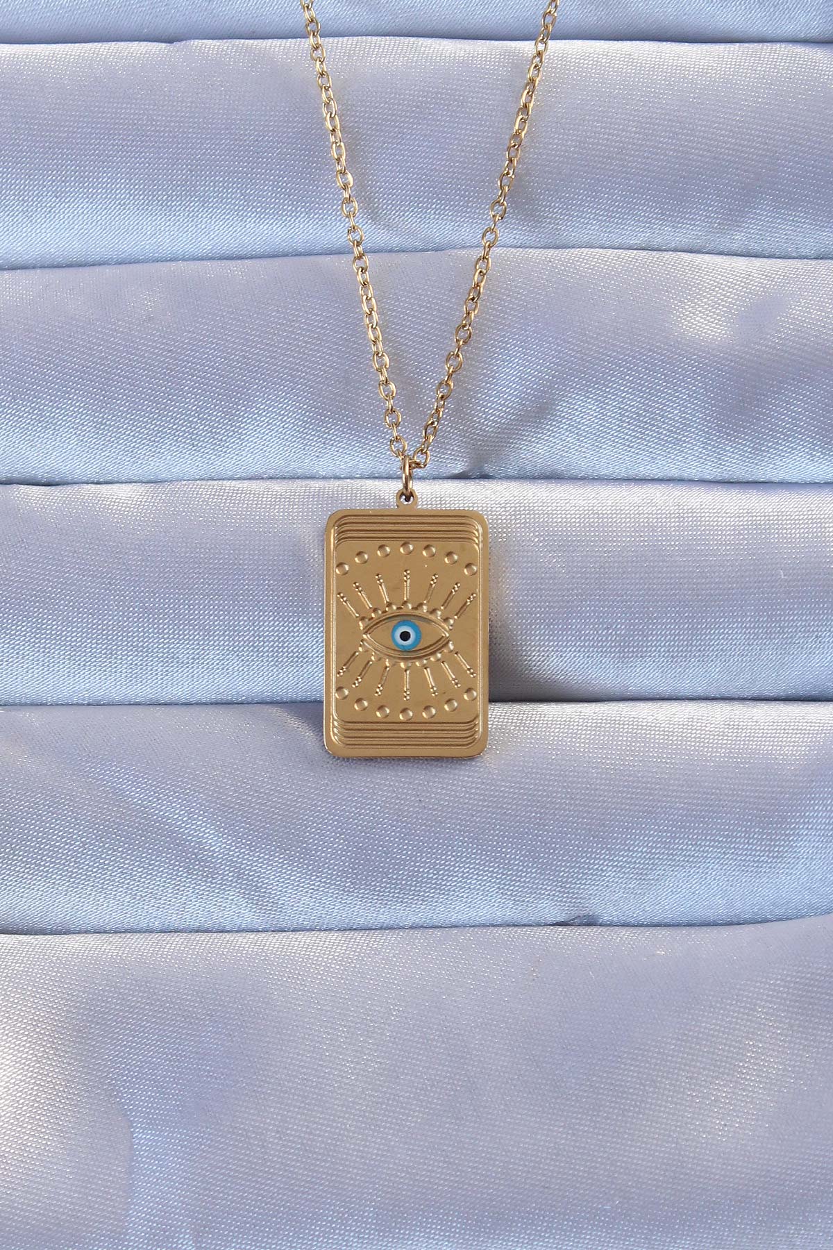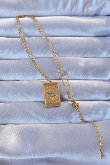 316L Altın Renk İşlemeli Nazarlı Göz Model Vintage Kolye - 257548