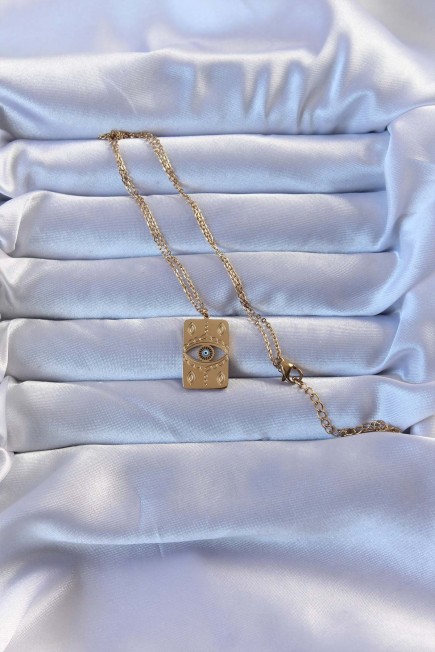 316L Altın Renk İşlemeli Nazarlı Vintage Kolye - 257545