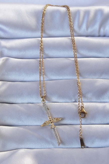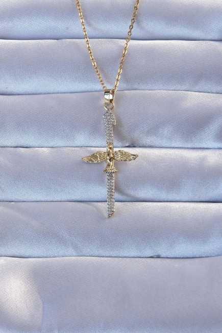 316L Altın Renk Zirkon Taşlı Kılıç Model Anka Kuşu Kolye - 257553
