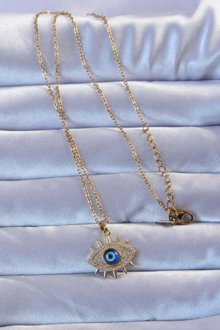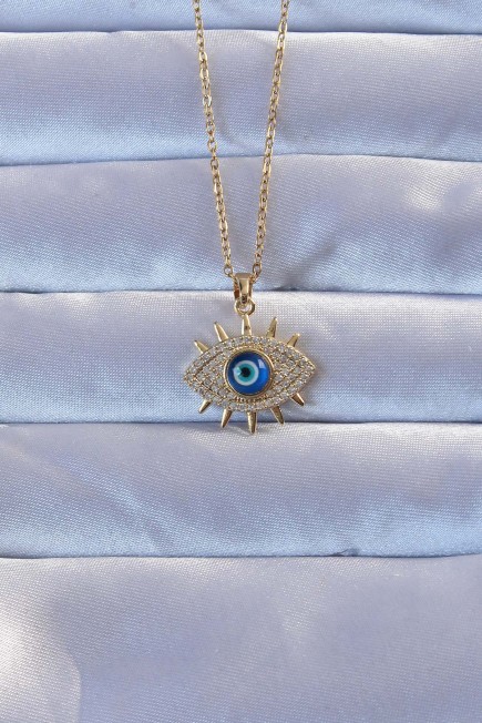 316L Altın Renk Zirkon Taşlı Nazarlı Göz Kolye - 257550