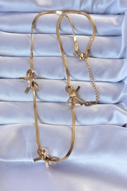 316L Çelik Altın Renk İtalyan Zincirli Fiyonk Kolye - 257538