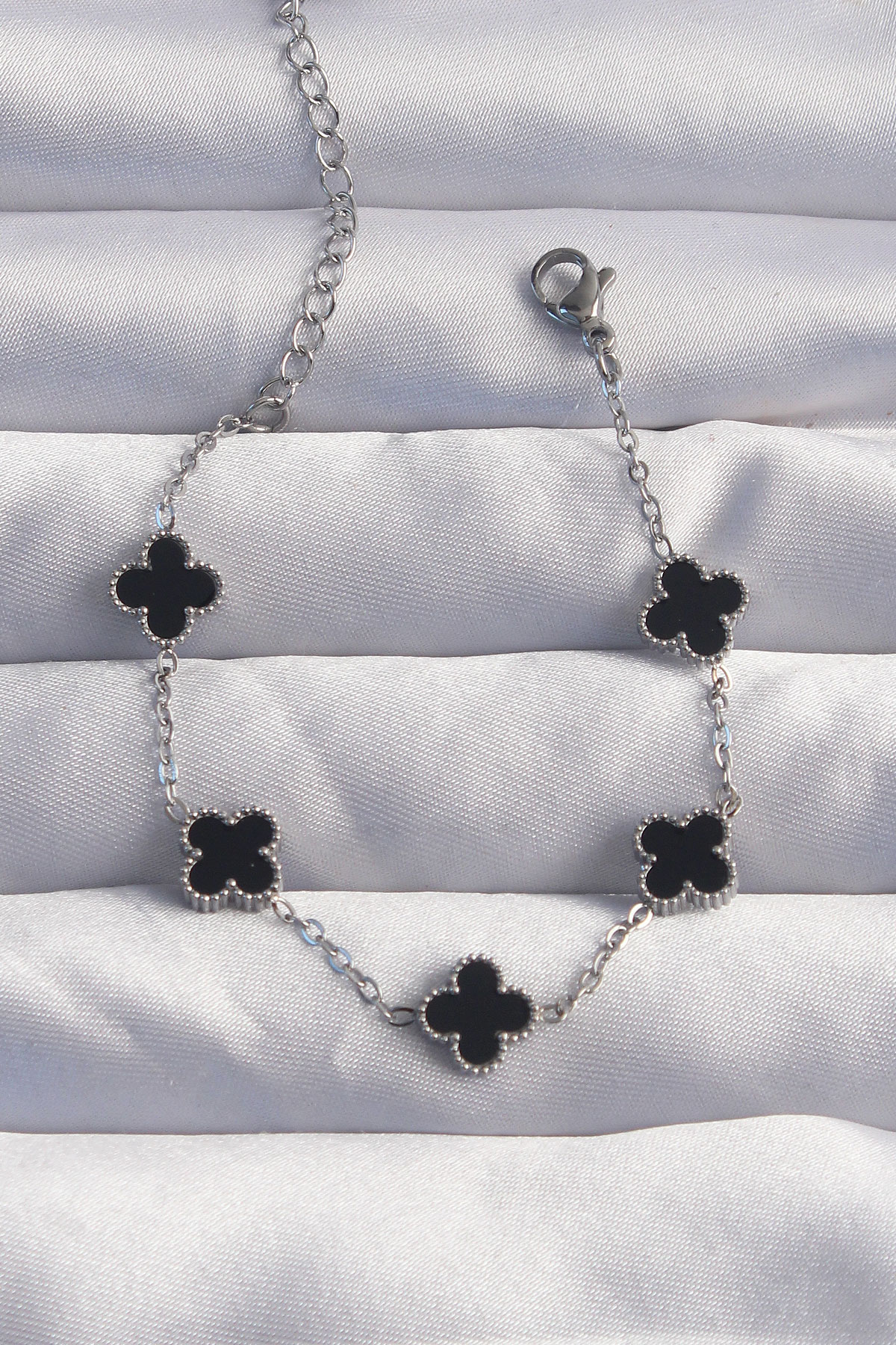 316L Çelik Baby Boy Gümüş Renk Siyah Mineli Yonca Bileklik - 256691