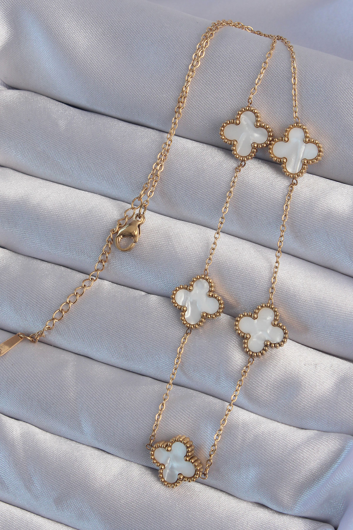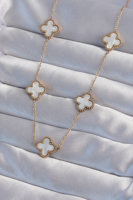 316L Çelik Gold Renk Beyaz Sedefli Yonca Kolye - 256702