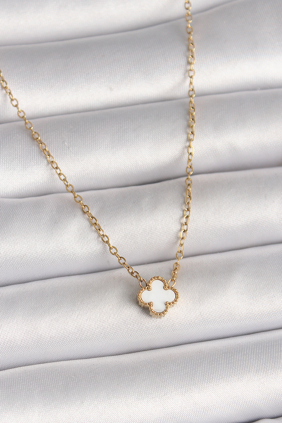 316L Çelik Gold Renk Beyaz Yonca Model Kadın Kolye - 261994