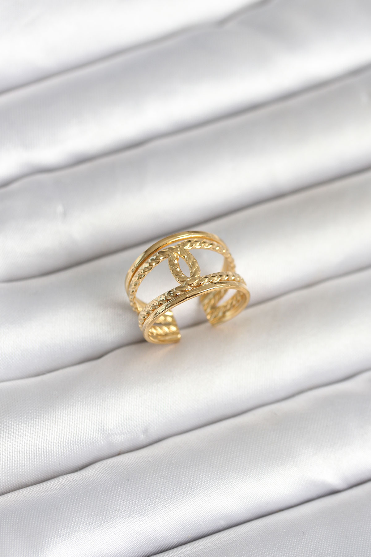 316L Çelik Gold Renk Burgu Düğüm Model Kadın Yüzük - 268367