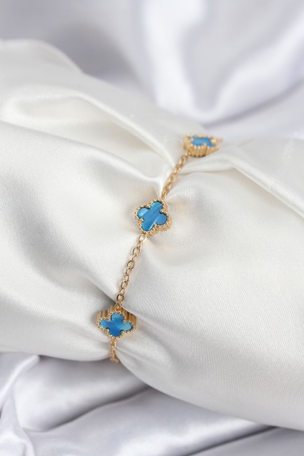 316L Çelik Gold Renk Buz Mavisi Baby Boy Yonca Kadın Bileklik - 265733