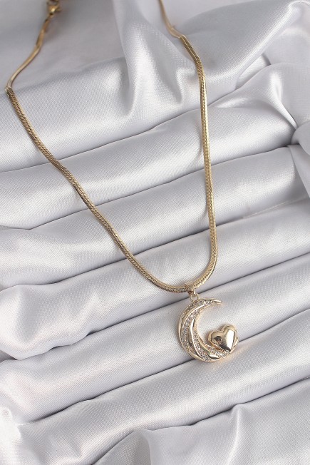 316L Çelik Gold Renk Çelik İtalyan Zincir Zirkon Taşlı Halil Figür Kalp Detay Kadın Kolye - 259363