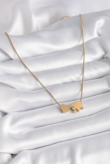 316L Çelik Gold Renk Fil Kalp Figürlü Kadın Kolye - 258467