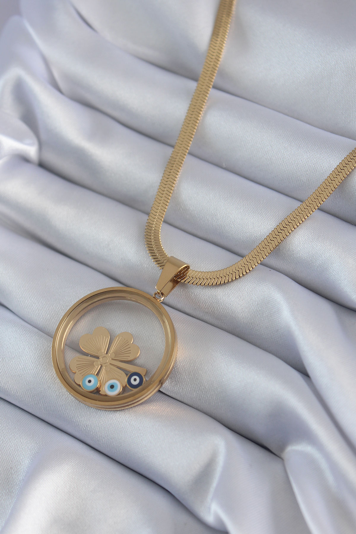 316L Çelik Gold Renk İtalyan Zincir Açılabilir Fanus Yonca Figür Model Kadın Kolye - 253567