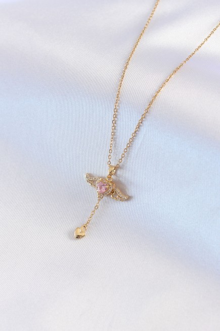 316L Çelik Gold Renk Kanatlı Kalp Model Zirkon Taş Detay Kadın Kolye - 248736