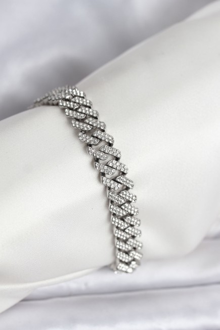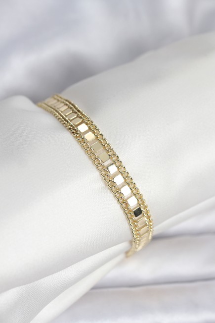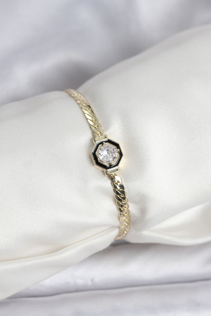 316L Çelik Gold Renk Kare Zirkon Taşlı Yılan Zincirli Kadın Bileklik - 266706