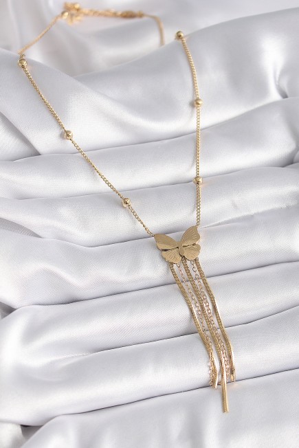 316L Çelik Gold Renk Kelebek Figür Sallantı İtalyan Zincirli Kadın Kolye - 258452