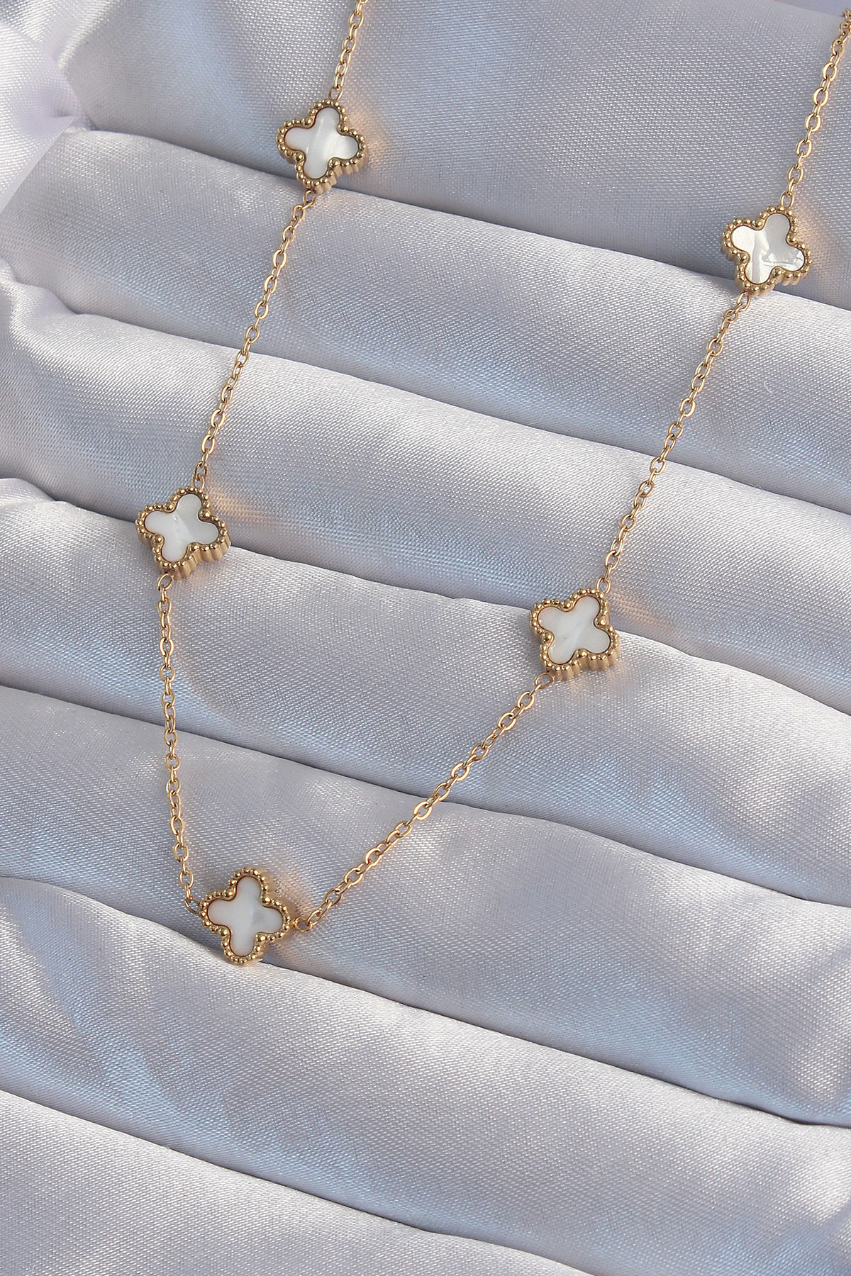 316L Çelik Gold Renk Minimal Beyaz Sedefli Yonca Kolye - 256708