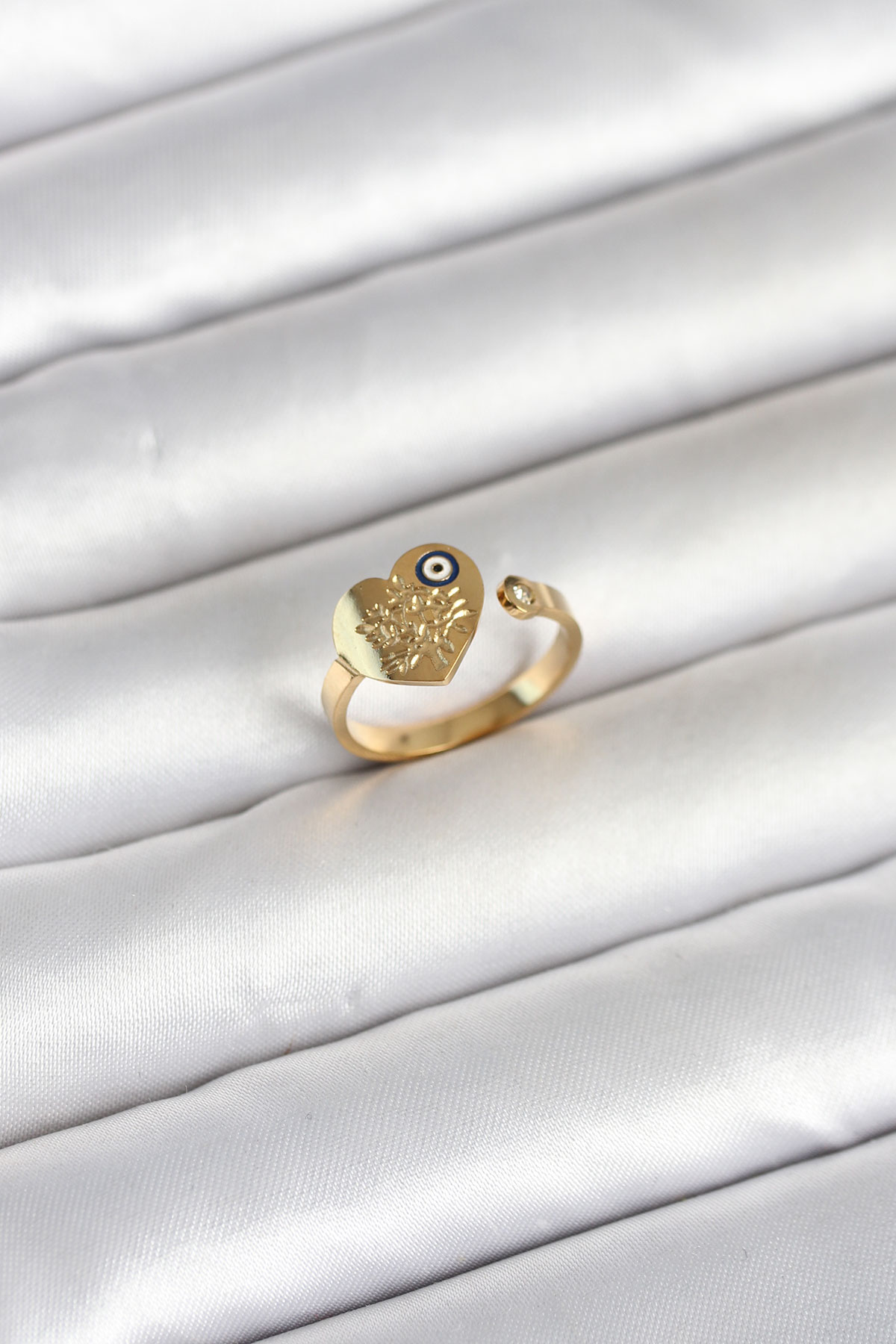 316L Çelik Gold Renk Nazar Detaylı Kalp Model Kadın Yüzük - 268371