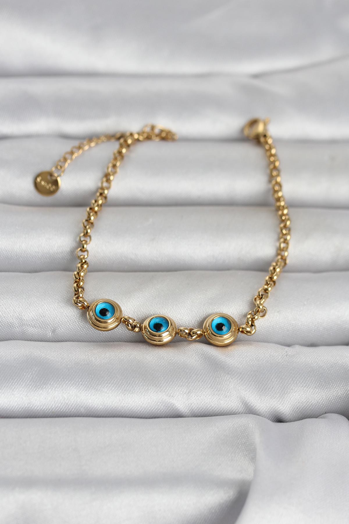 316L Çelik Gold Renk Nazarlı Kadın Bileklik - 268297