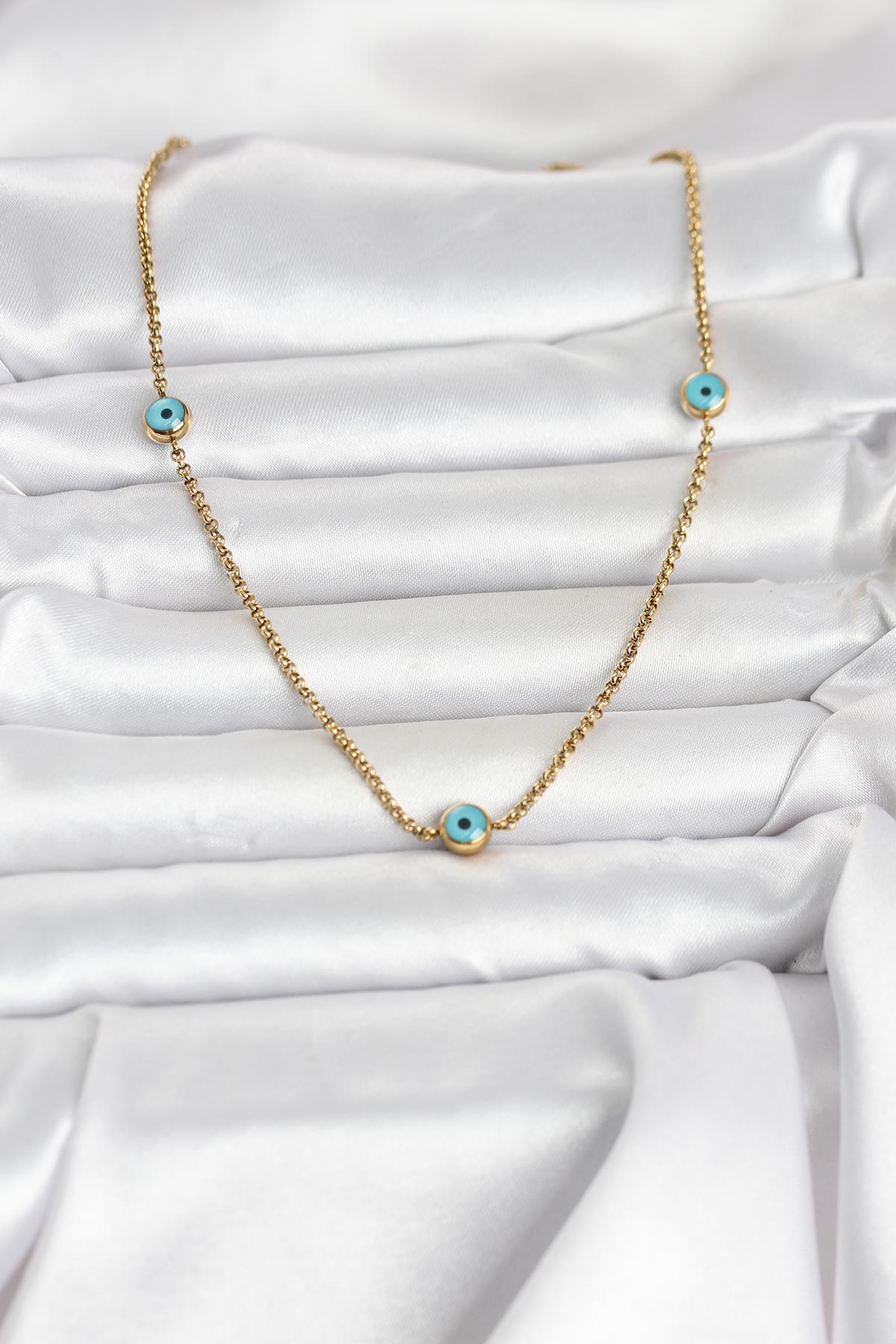 316L Çelik Gold Renk Nazarlı Model Kadın Kolye - 268347