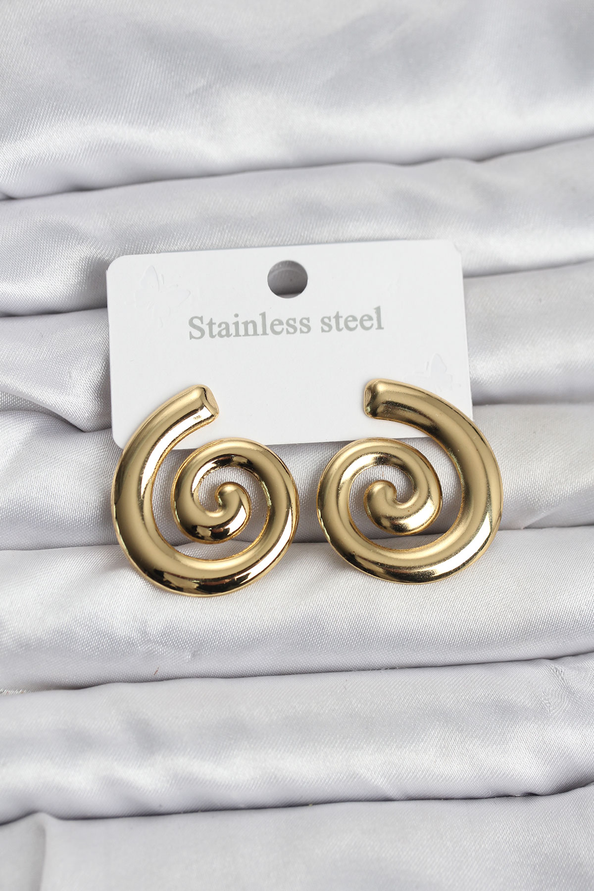 316L Çelik Gold Renk Sarmal Modelli Kadın Küpe - 266770