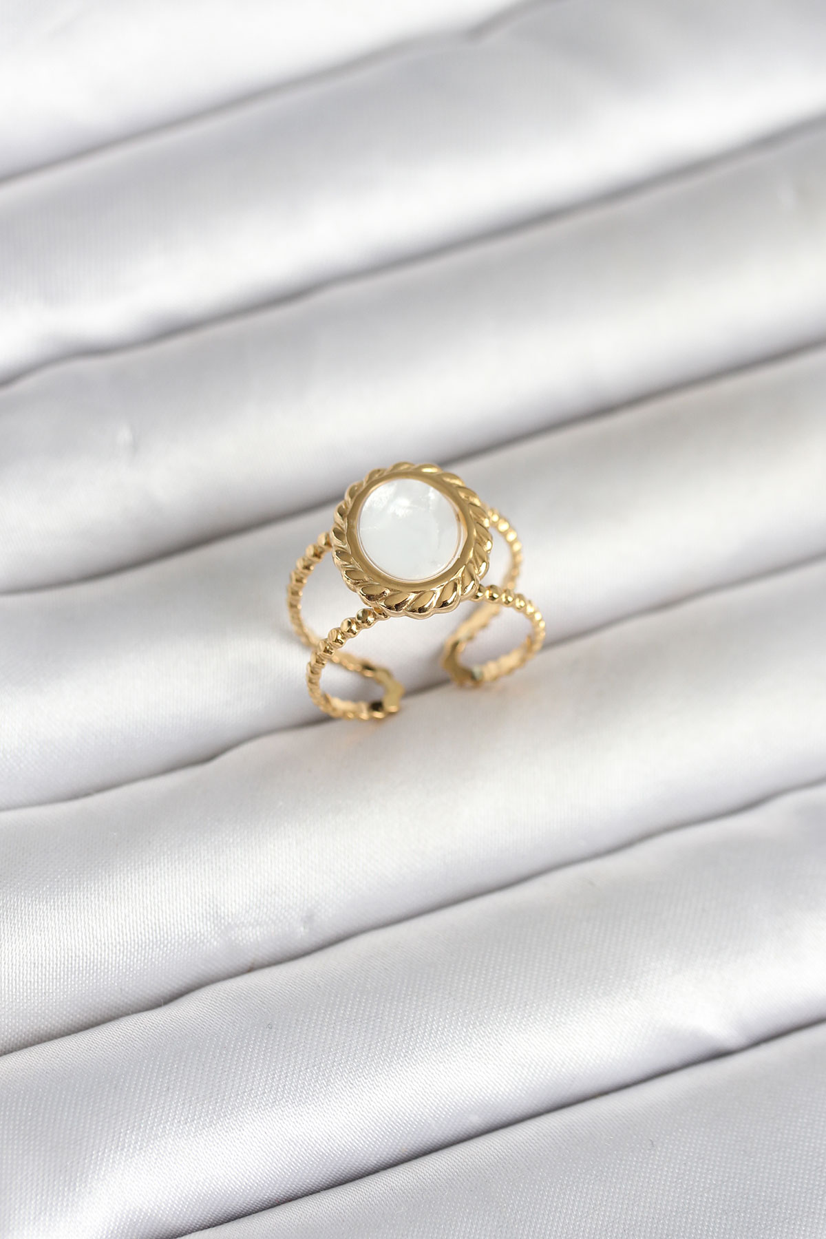 316L Çelik Gold Renk Sedefli Vintage Kadın Yüzük - 268375