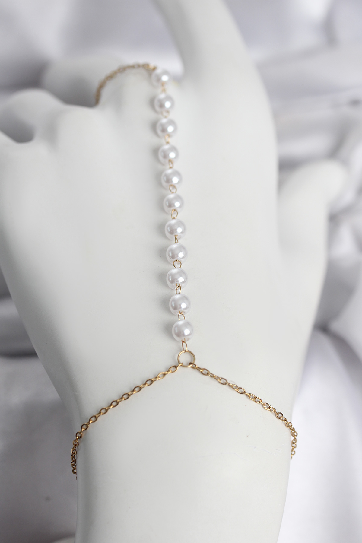 316L Çelik Gold Renk Sıralı İncili Model Kadın Şahmeran - 268165