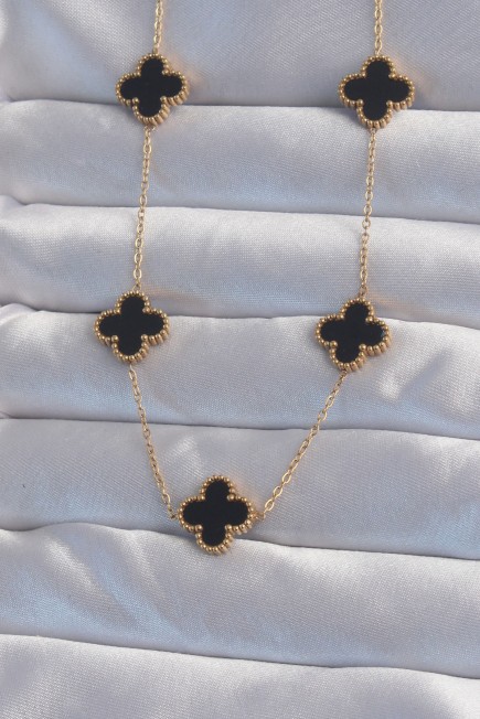 316L Çelik Gold Renk Siyah Mineli Yonca Kolye - 256704