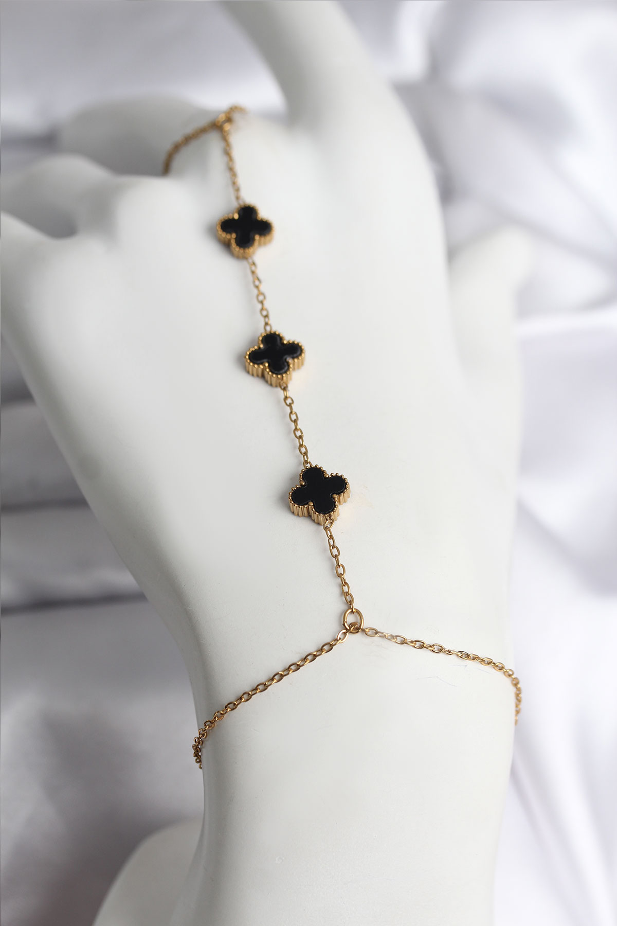 316L Çelik Gold Renk Siyah Yonca Model Kadın Şahmeran - 266732