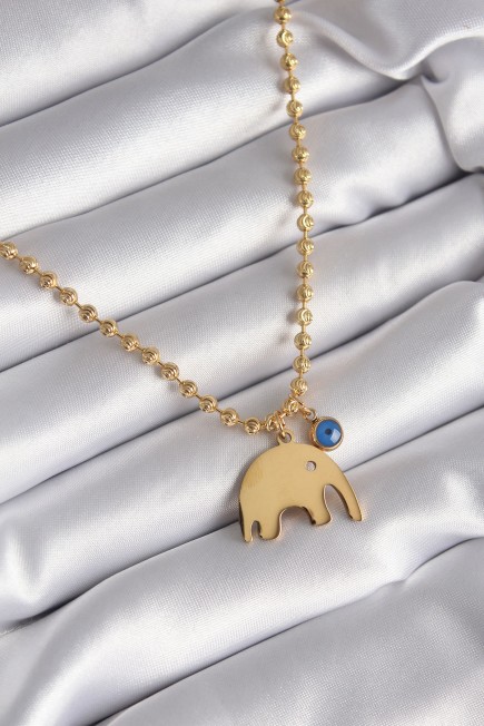 316L Çelik Gold Renk Top Zincir Model Fil Figür Nazar Boncuk Detay Kadın Kolye - 253915