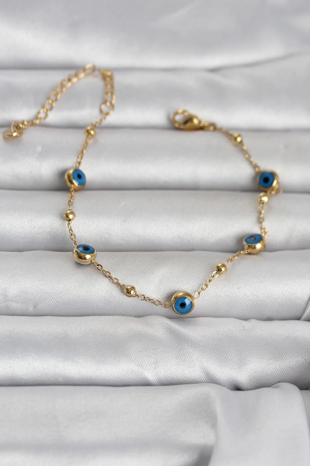 316L Çelik Gold Renk Top Zincirli Nazarlı Kadın Bileklik - 268293
