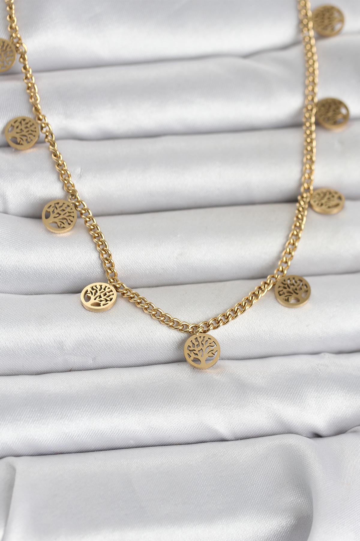 316L Çelik Gold Renk Yaşam Ağacı Model Kadın Kolye - 268348