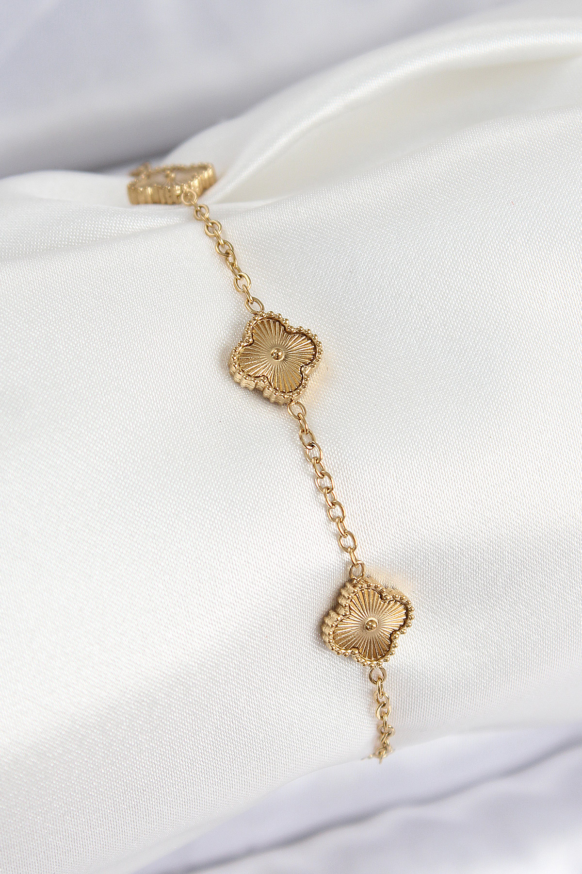 316L Çelik Gold Renk Yonca Kadın Bileklik - 264705