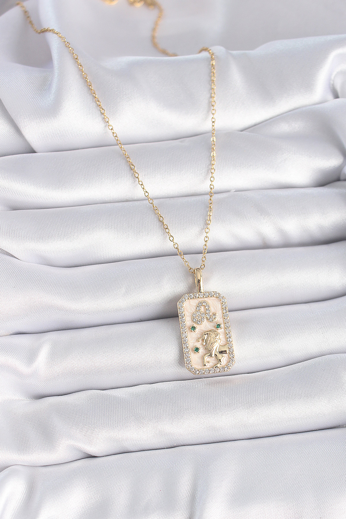 316L Çelik Gold Renk Zincir Aslan Burcu Zirkon Taşlı Kadın Kolye - 258643