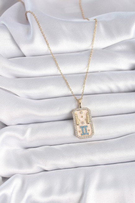 316L Çelik Gold Renk Zincir İkizler Burcu Zirkon Taşlı Kadın Kolye - 258651