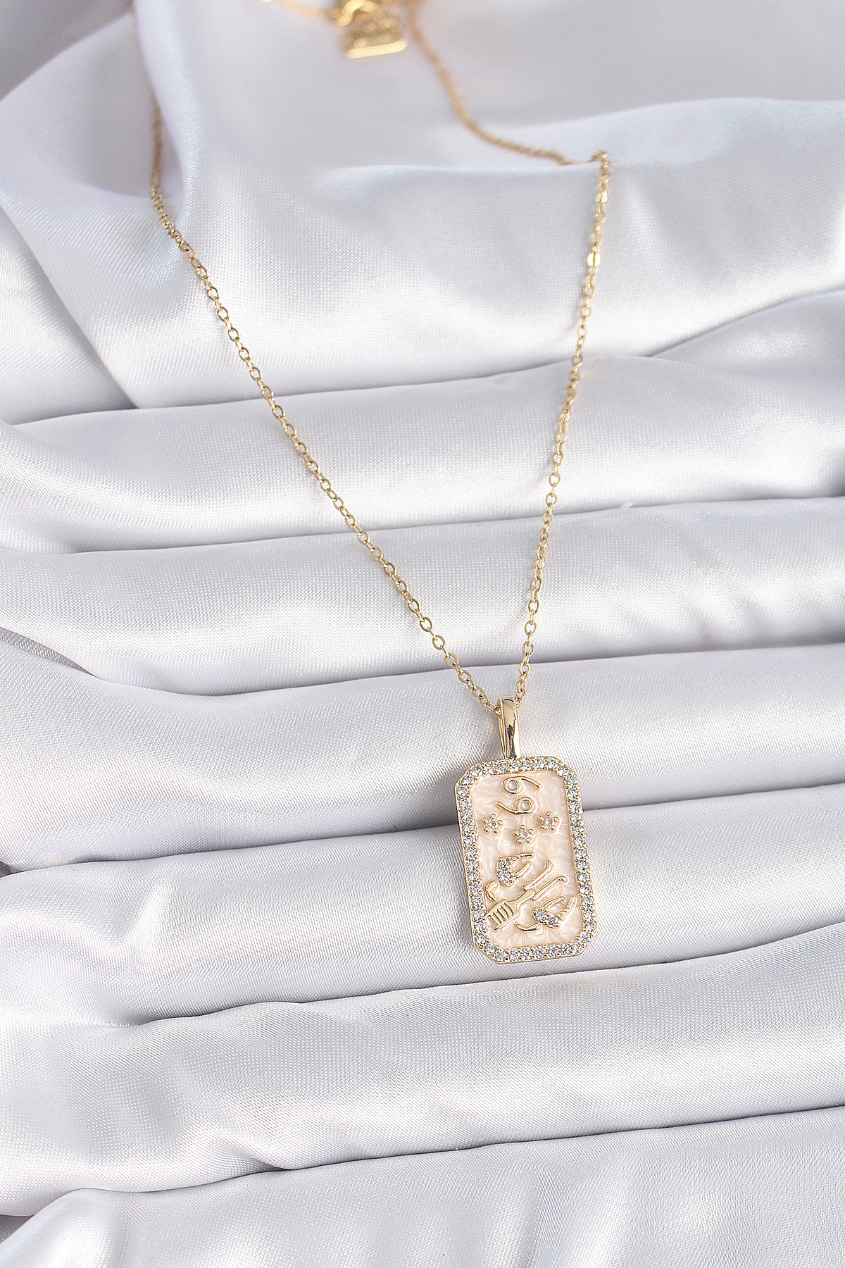 316L Çelik Gold Renk Zincir Yengeç Burcu Zirkon Taşlı Kadın Kolye - 258650