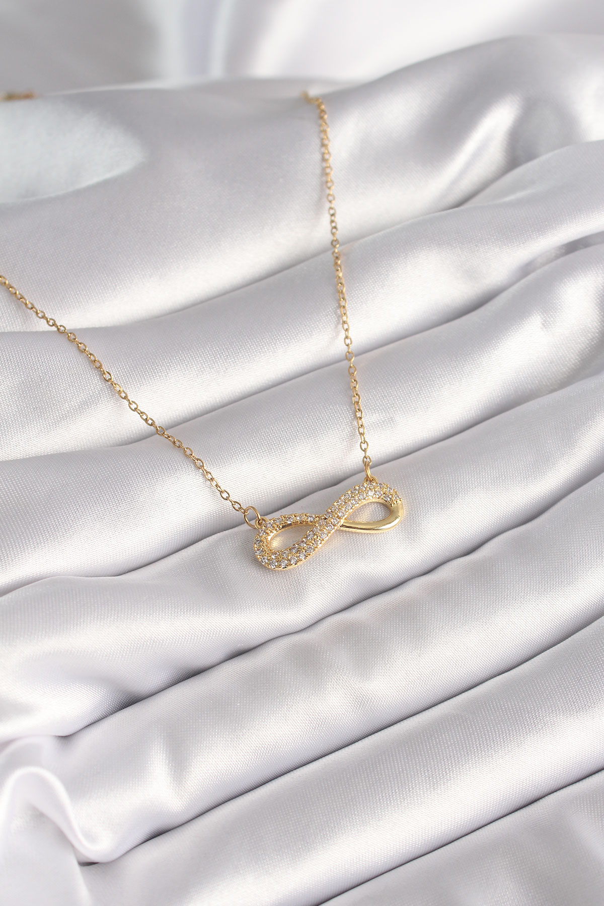 316L Çelik Gold Renk Zincir Zirkon Taşlı Sonsuzluk Model Kadın Kolye - 254345
