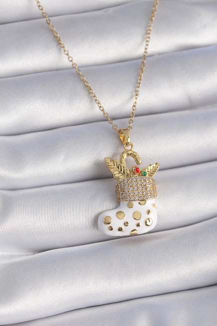 316L Çelik Gold Renk Zincir Zirkon Taşlı Yılbaşı Temalı Noel Çorabı Figür Kadın Kolye - 258602