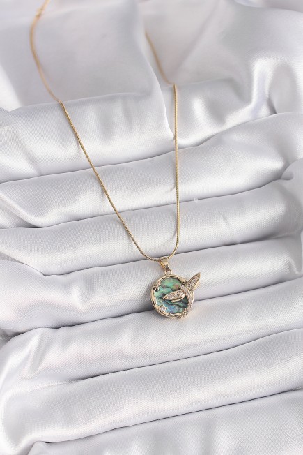 316L Çelik Gold Renk Zincir Zirkon Taşlı Yusufçuk Model Kadın Kolye - 258806