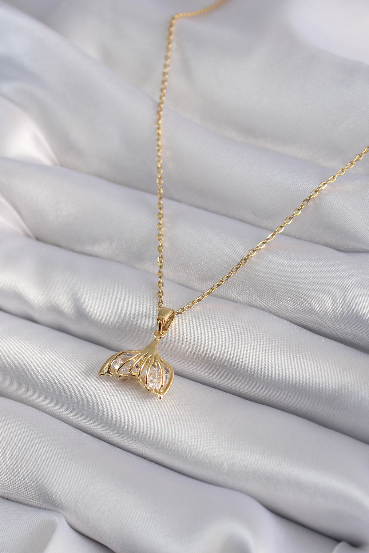 316L Çelik Gold Renk Zirkon Taşlı Balık Kuyruğu Model Kadın Kolye - 254166