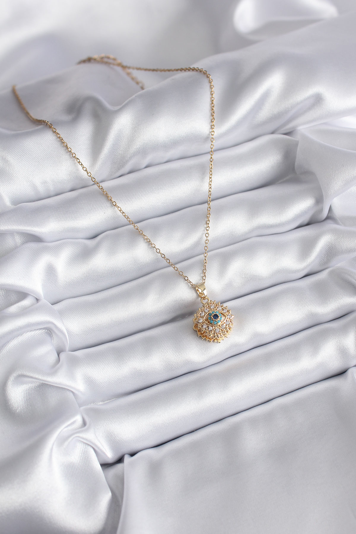316L Çelik Gold Renk Zirkon Taşlı Göz Model Kadın Kolye - 252421