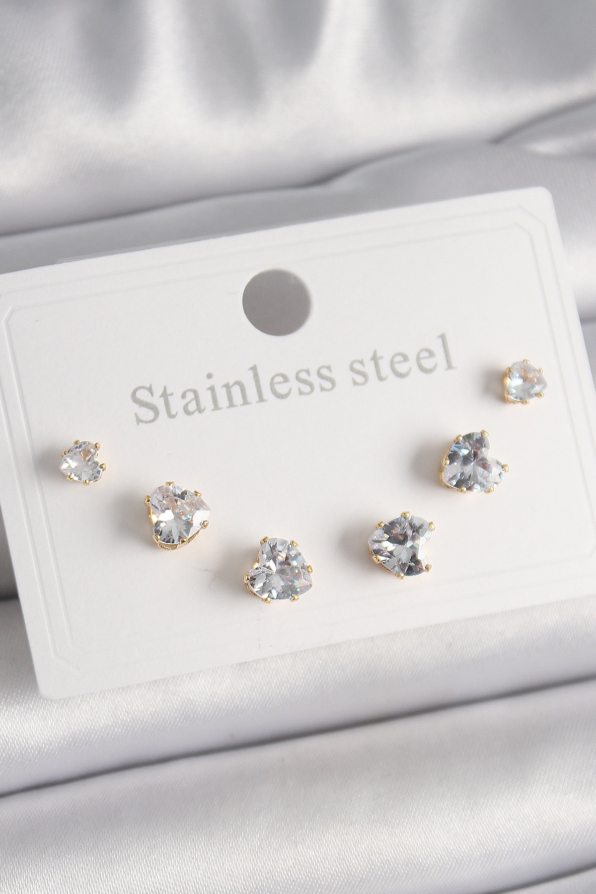 316L Çelik Gold Renk Zirkon Taşlı Kalp Model Kadın Küpe Seti - 259572