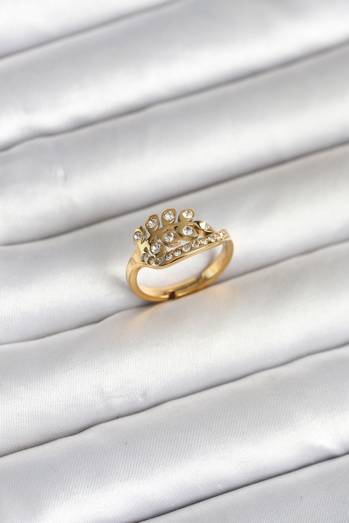 316L Çelik Gold Renk Zirkon Taşlı Kalp Model Kadın Yüzük - 268373