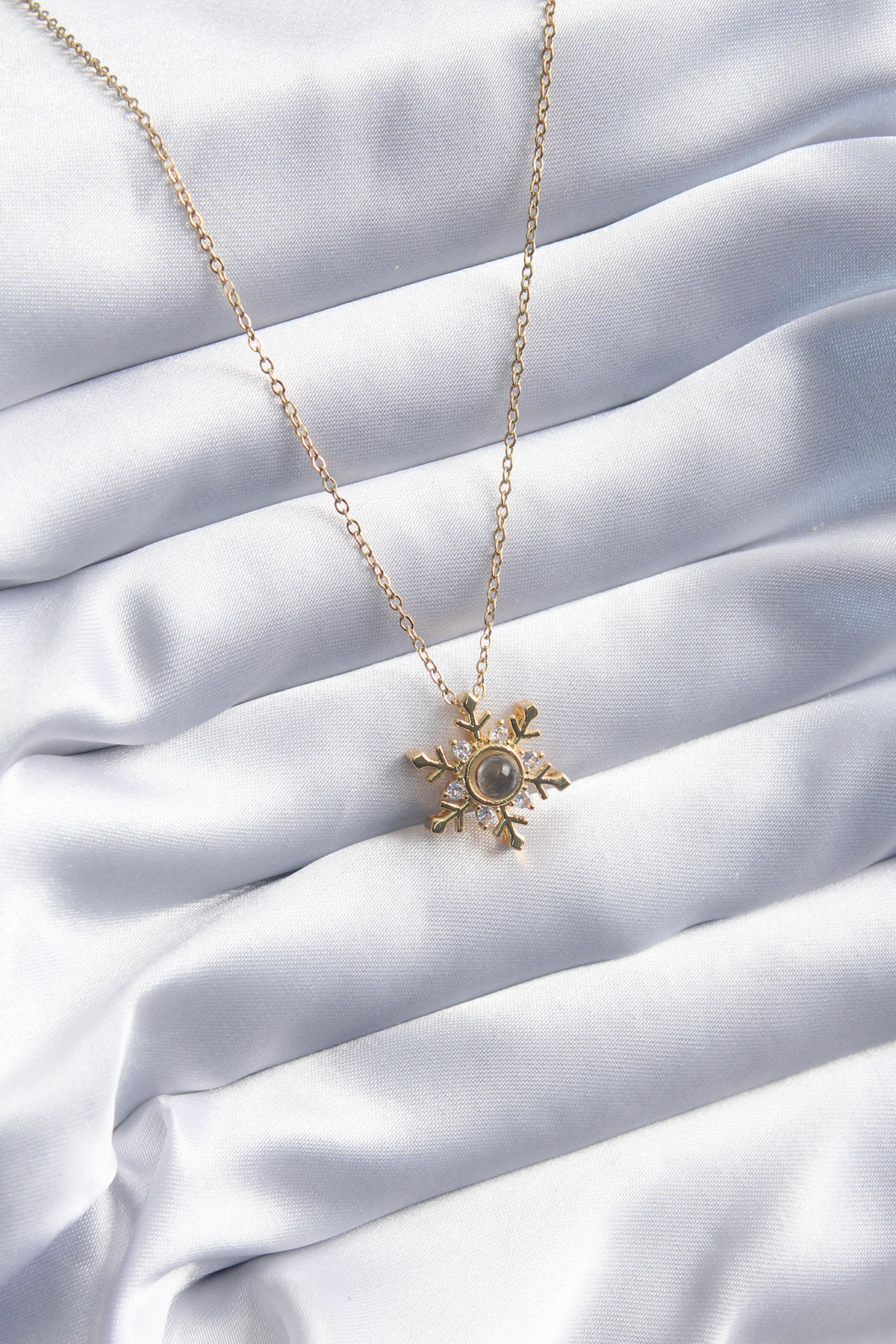 316L Çelik Gold Renk Zirkon Taşlı Kar Tanesi Projeksiyon Model Kadın Kolye - 252206
