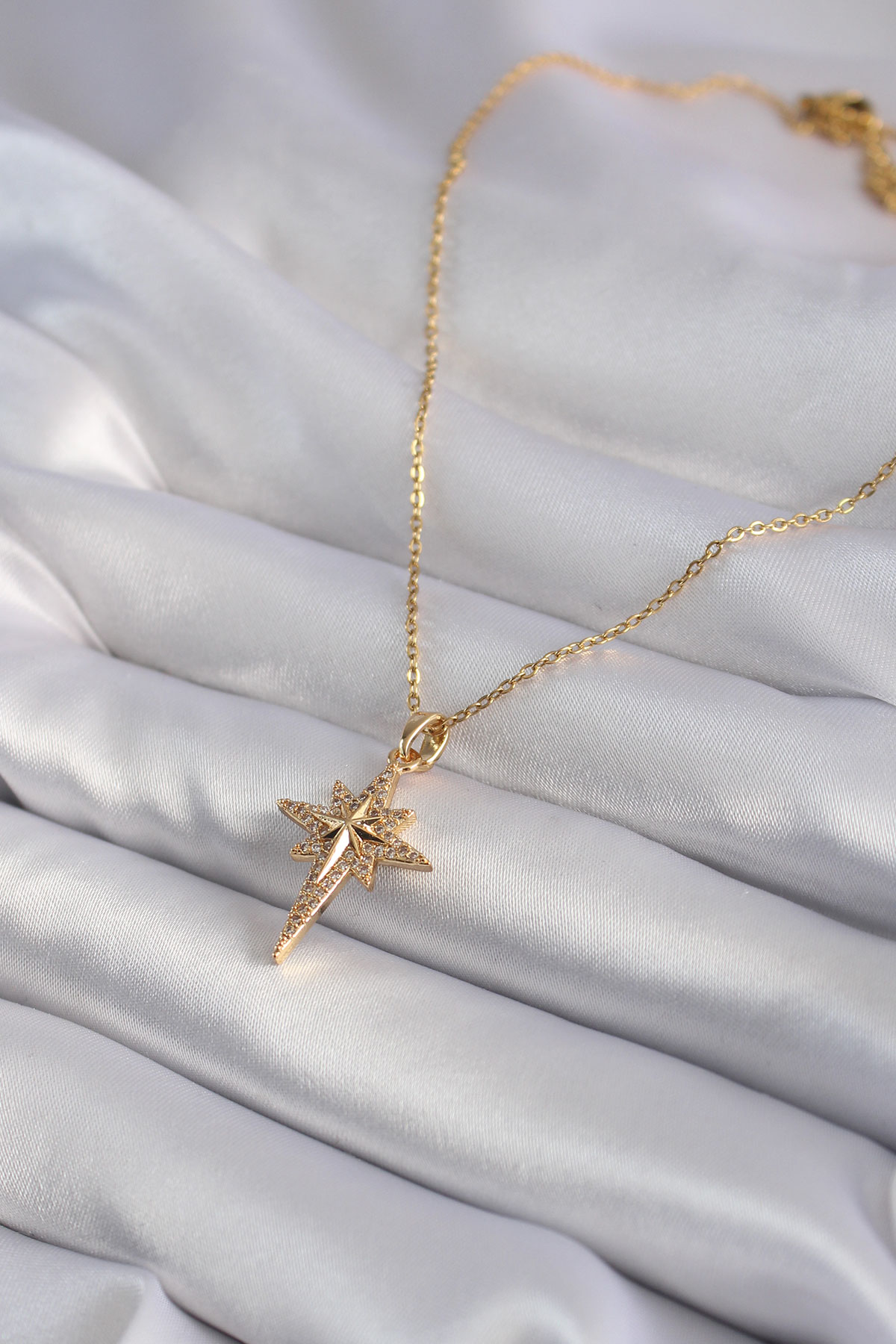 316L Çelik Gold Renk Zirkon Taşlı Kutup Yıldızı Model Kadın Kolye - 254167