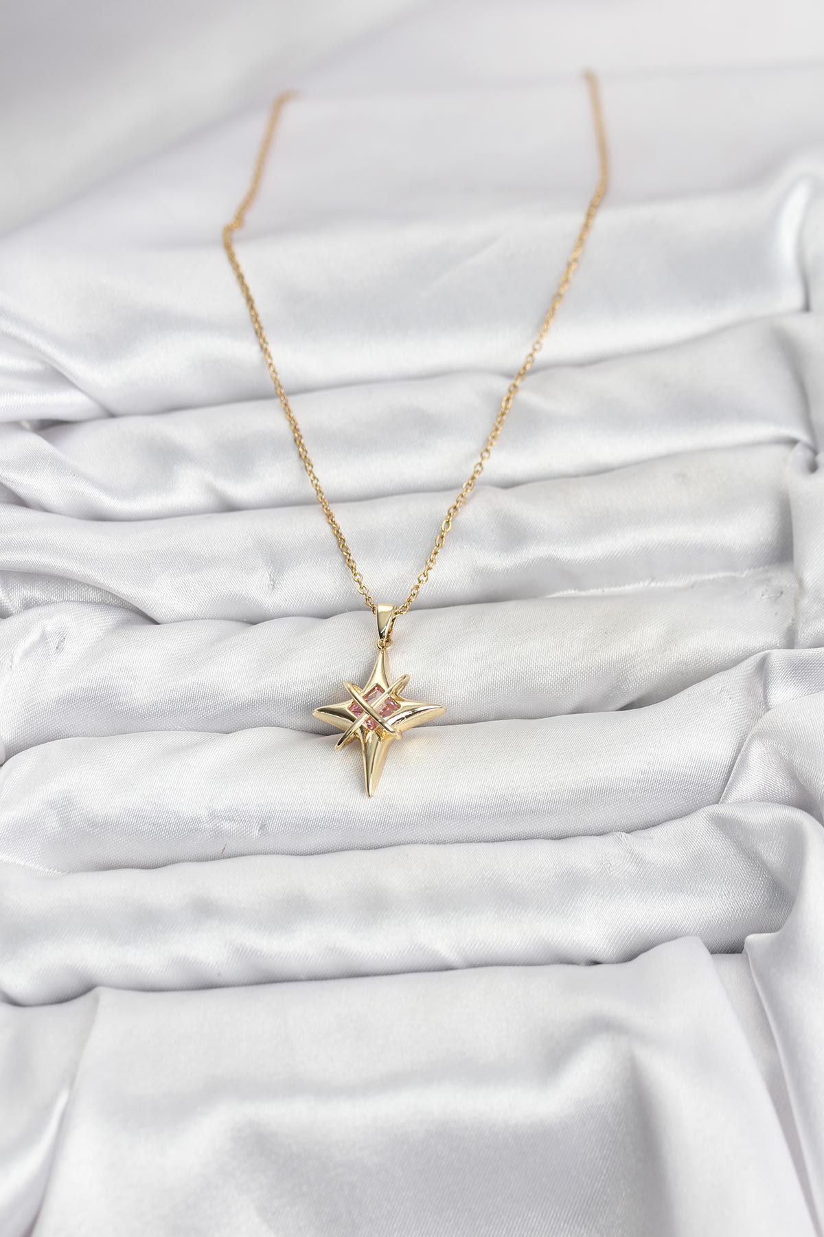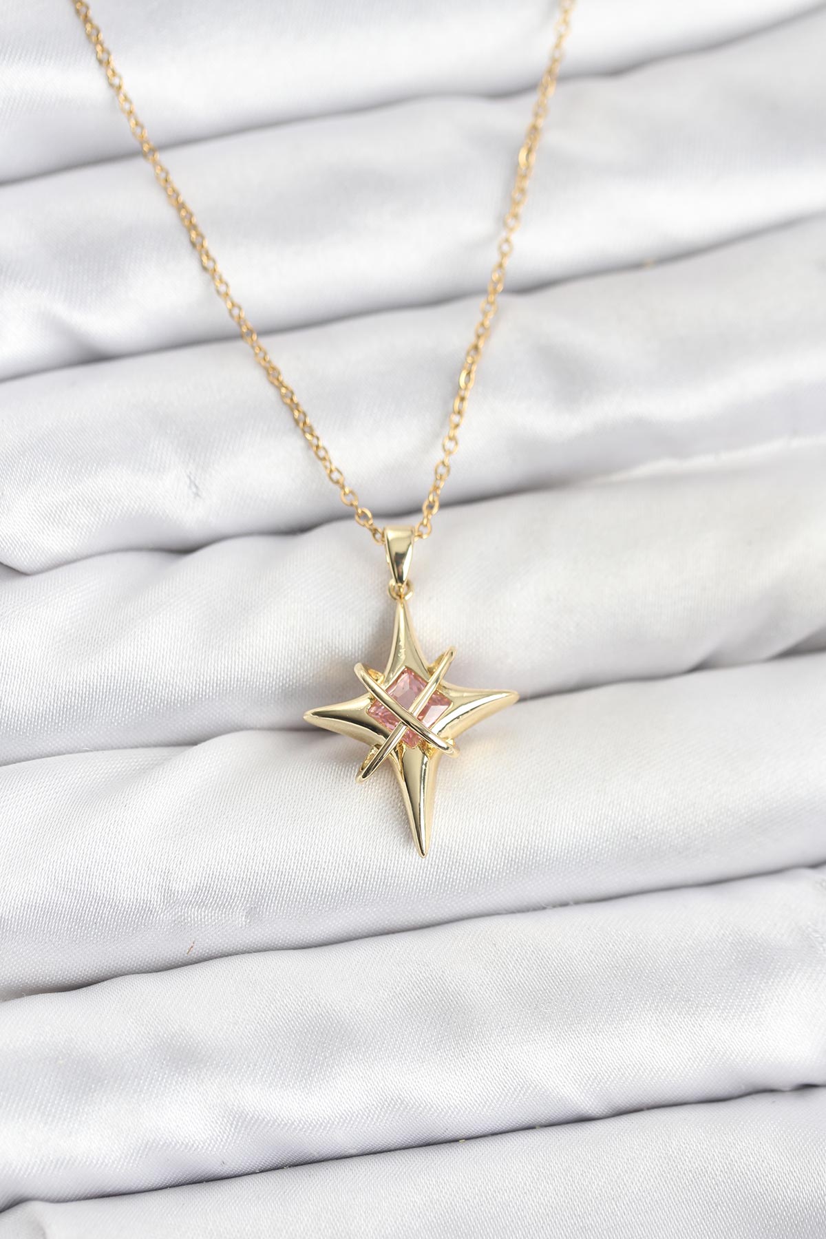 316L Çelik Gold Renk Zirkon Taşlı Kutup Yıldızı Model Kadın Kolye - 267176