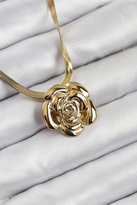 316L Çelik Gül Figürlü İtalyan Zincir Model Gold Renk Kadın Kolye - 265439