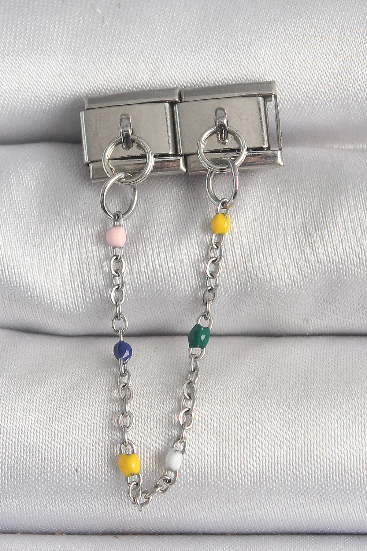 316L Çelik Gümüş Renk 2'Li Sallantı Zincir Model Nomination Charm - 262549