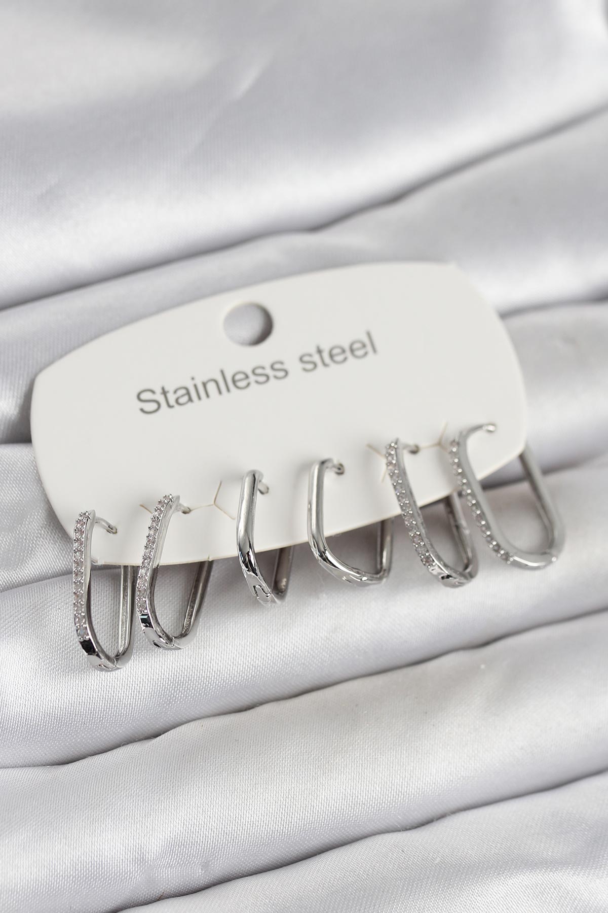 316L Çelik Gümüş Renk 6'lı Set Geometrik Model Kadın Küpe - 268227