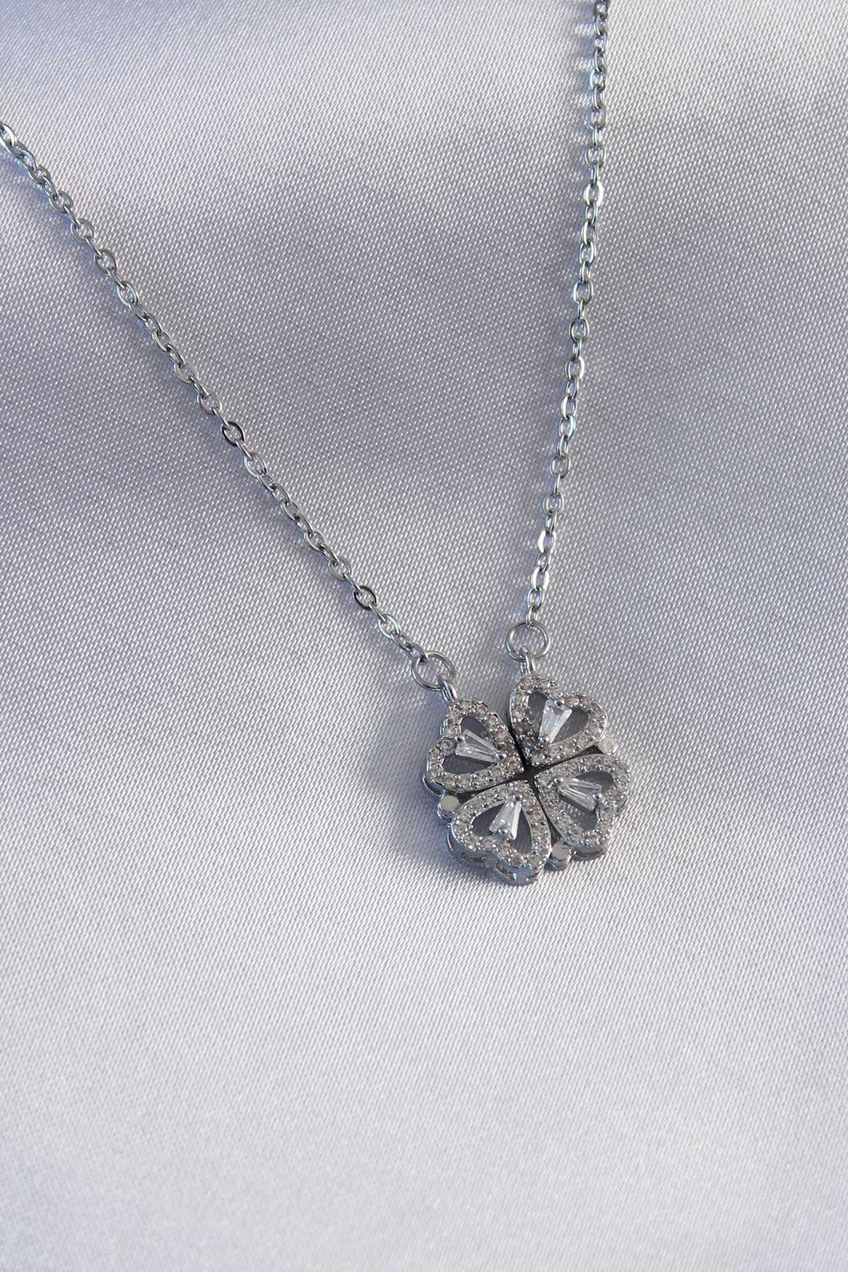 316L Çelik Gümüş Renk Açılır Yonca Model Kadın Kolye - 248273
