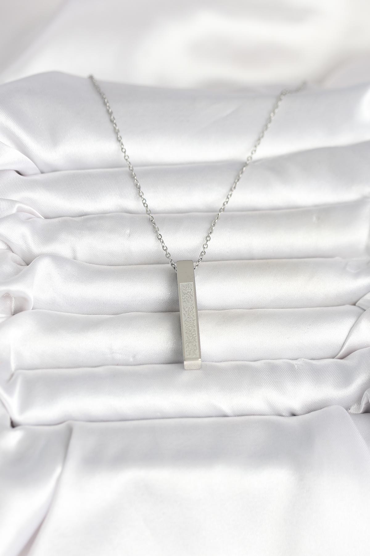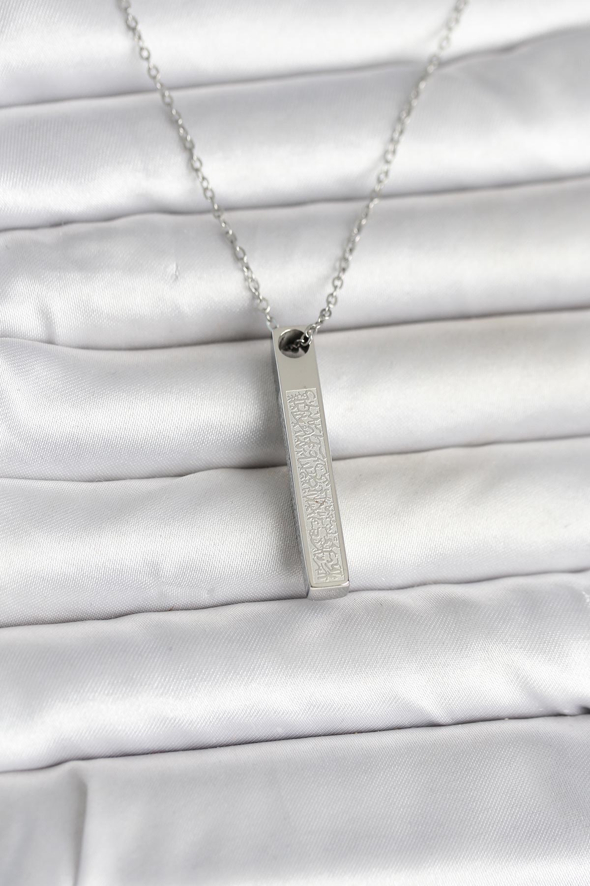 316L Çelik Gümüş Renk Ayetel Kürsi Yazılı Bar Çubuk Kolye - 268359